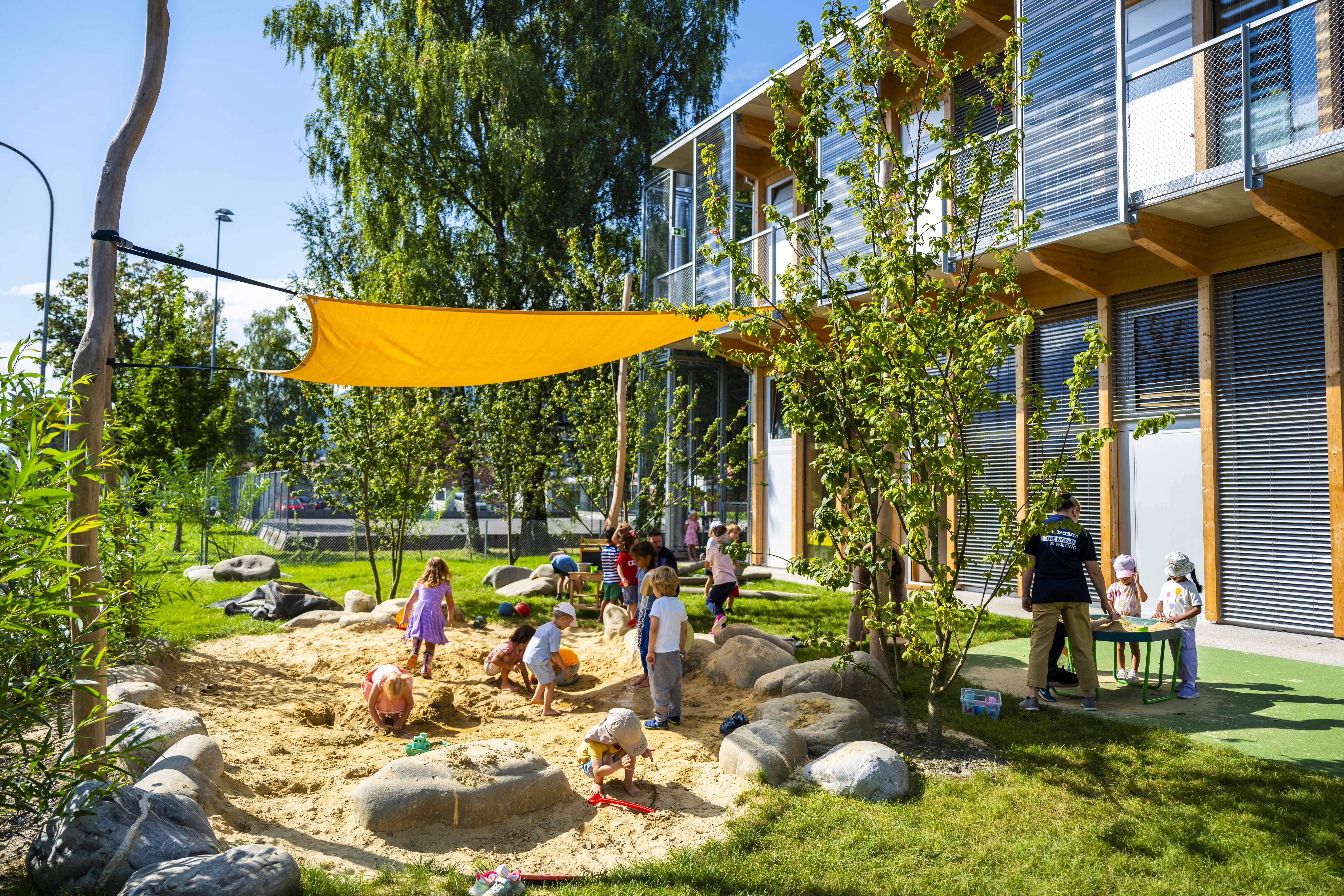 Unser Campus für unsere jüngsten SchülerInnen ist sorgfältig geplant und hat viel zu bieten, um Spiel, eigenes Erkunden und Lernerfahrungen zu fördern.